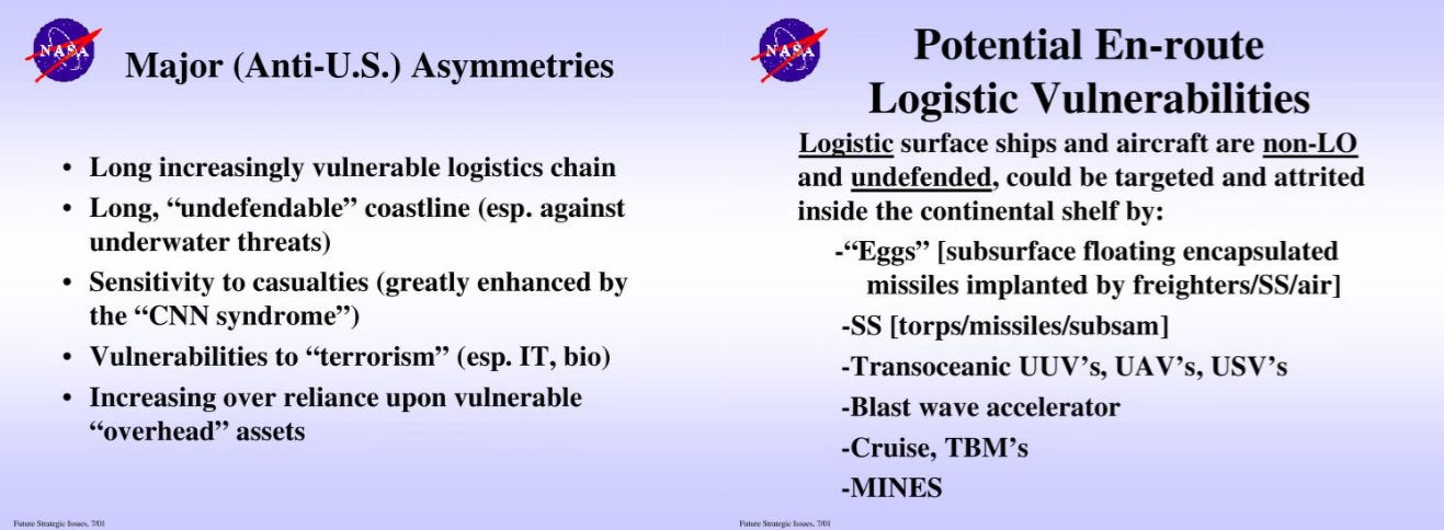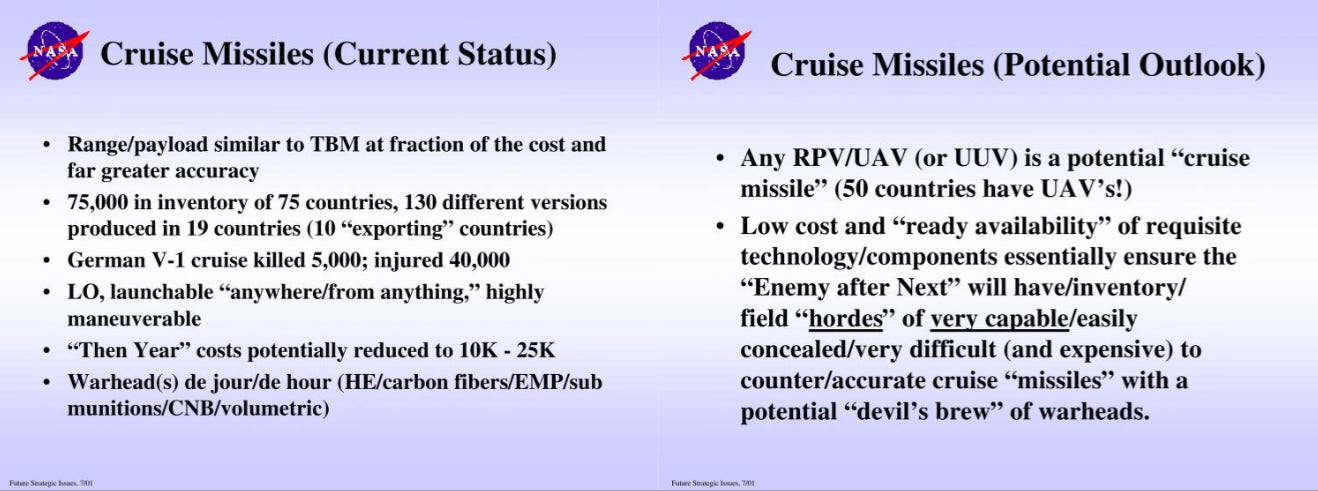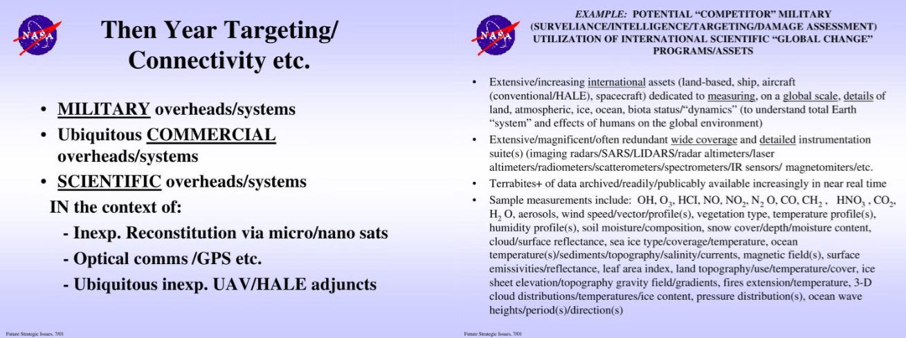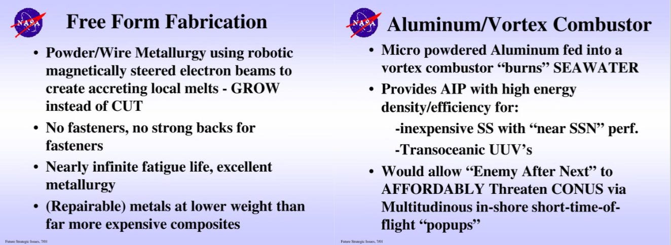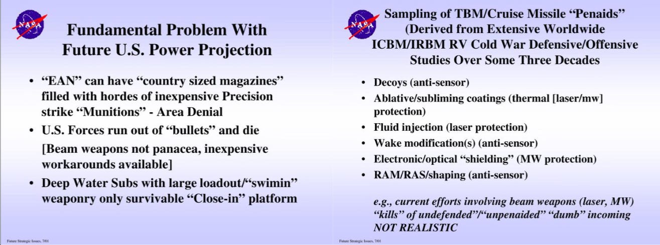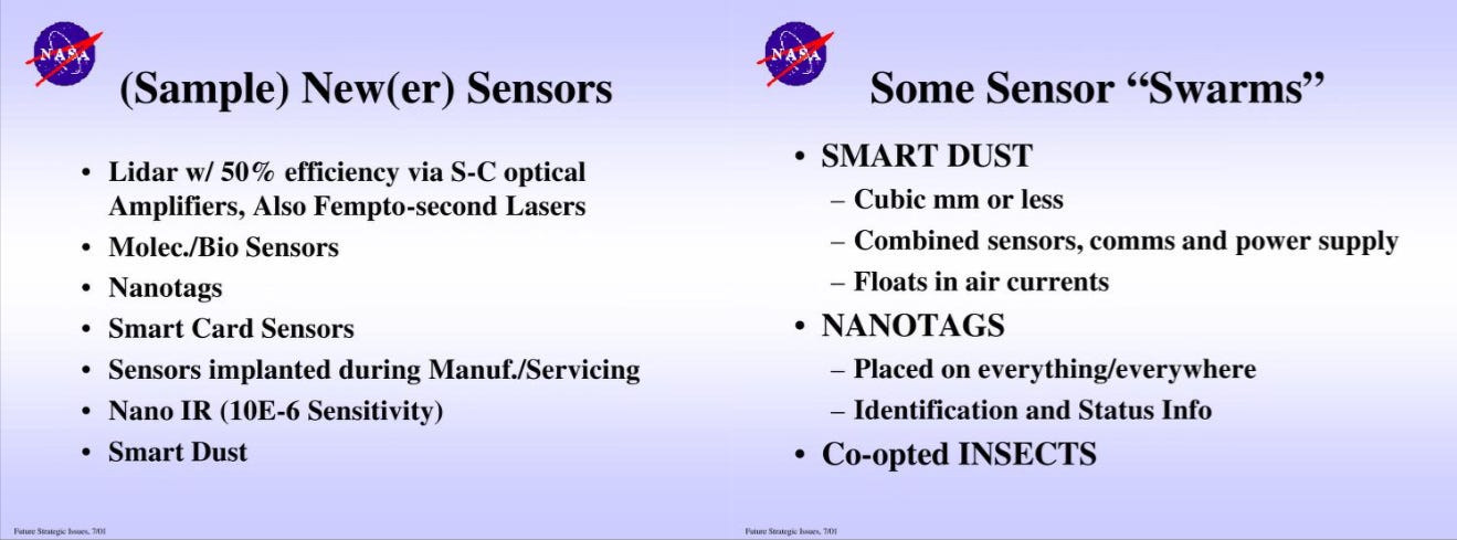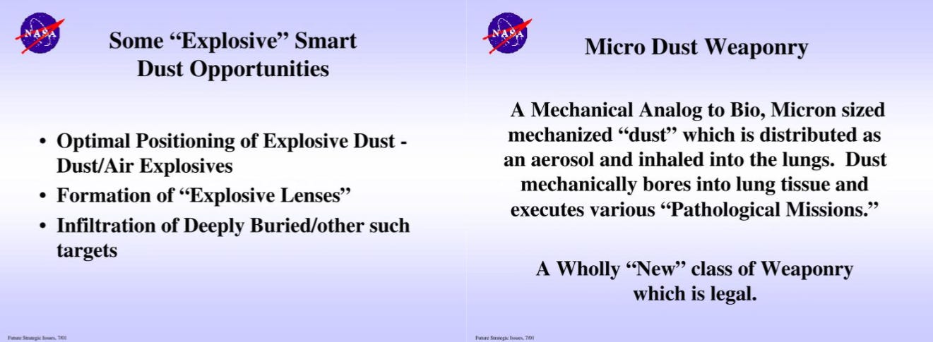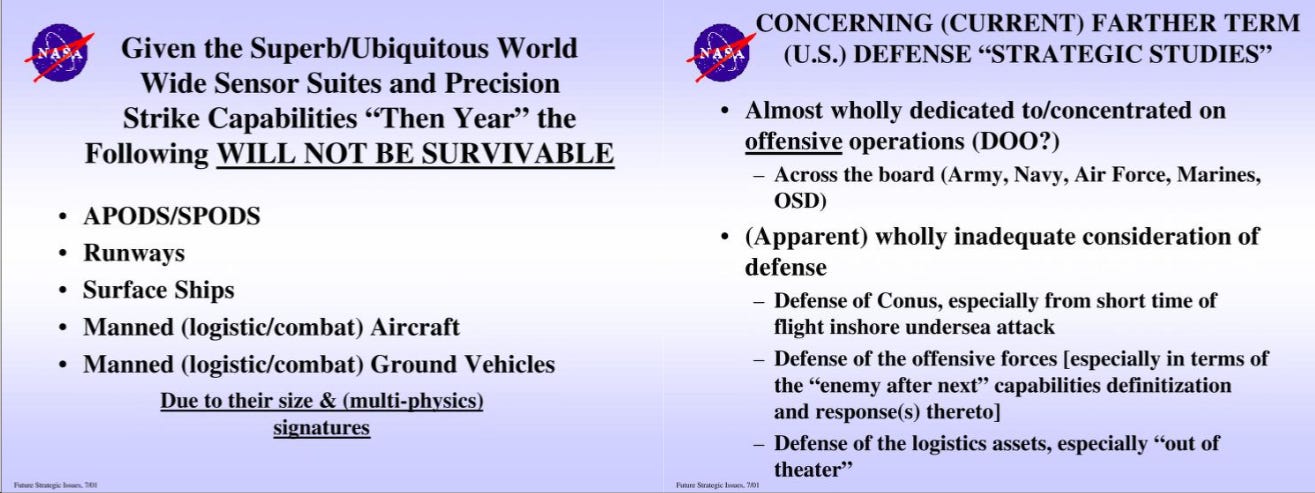Dennis M. Bushnell, “Future Strategic Issues/Future Warfare [Circa 2025]” (sic), NASA Langley Research Center (National Aeronautics and Space Administration), July 2001, 113 pp.; PDF, 1400357 bytes, MD5: c833f3fbc55d07fe891f5f4df5fb2f57. The aforesaid PDF was found on the US Department of Defense’s Defense Technical Information Center (DTIC) website, as archived by the following Internet Archive URL: http://wayback.archive.org/web/20031224161719/http://www.dtic.mil/ndia/2001testing/bushnell.pdf