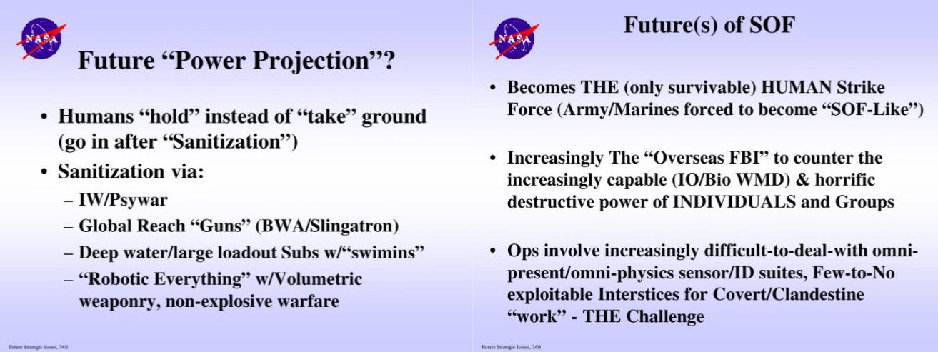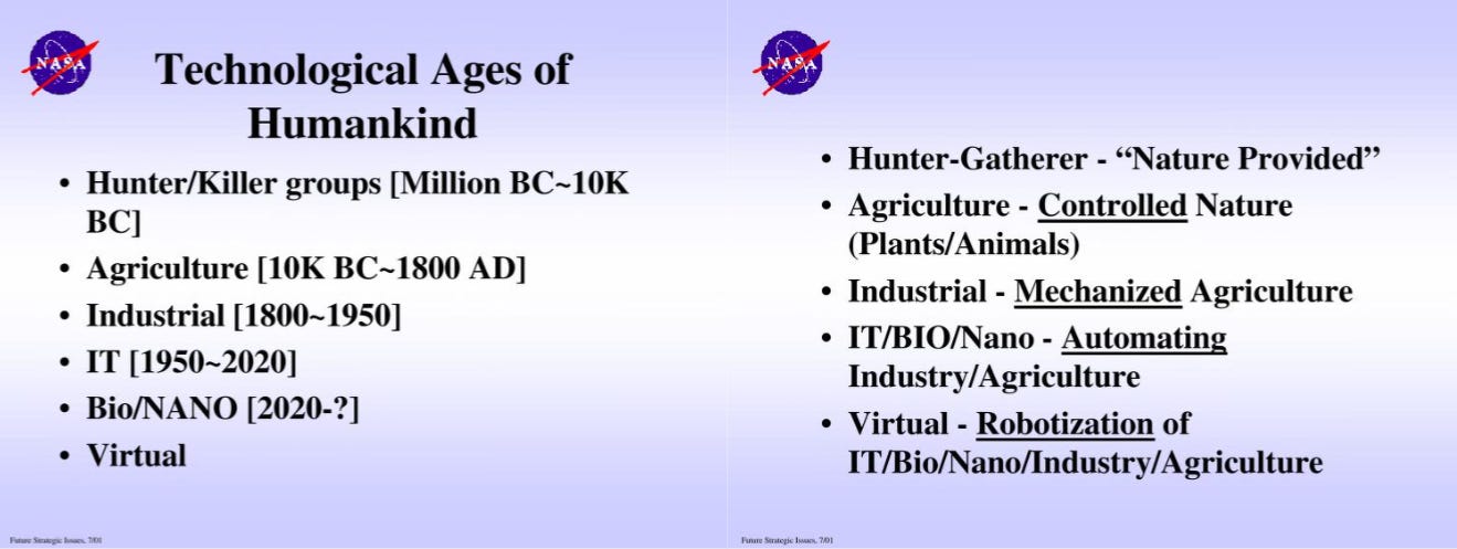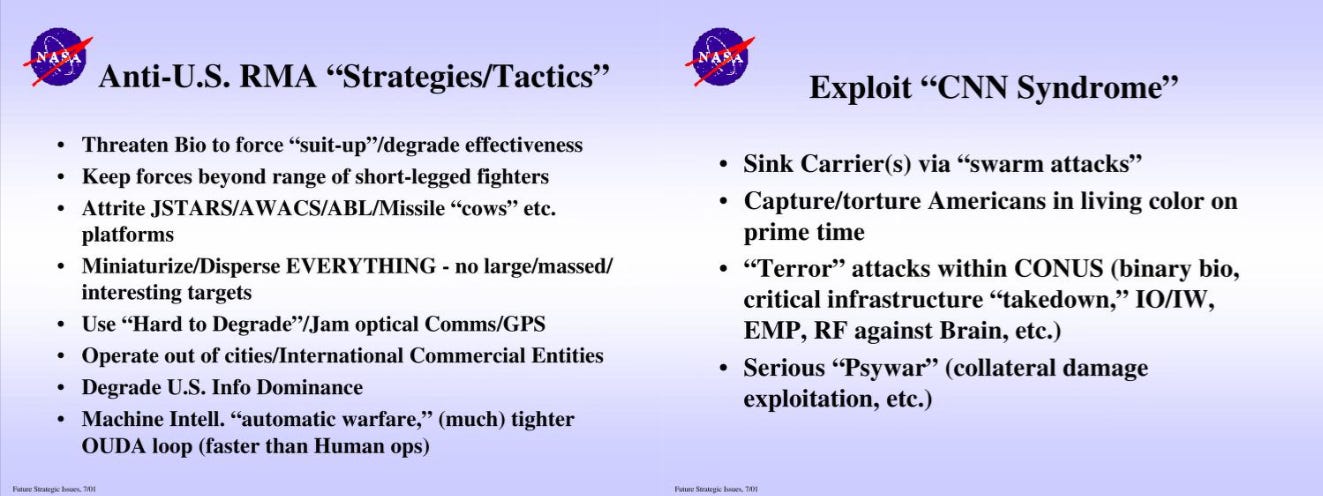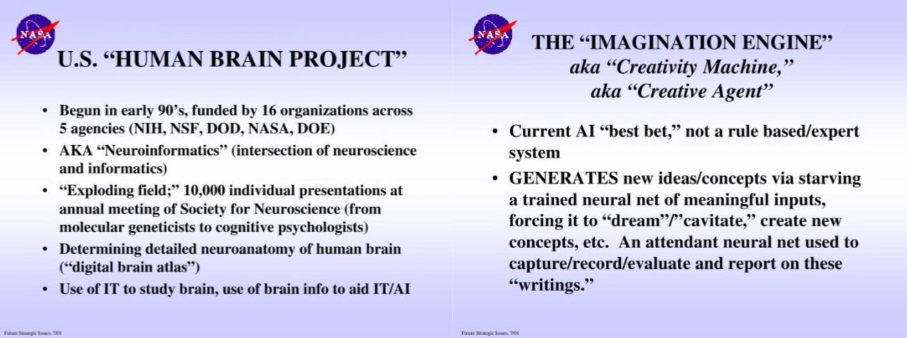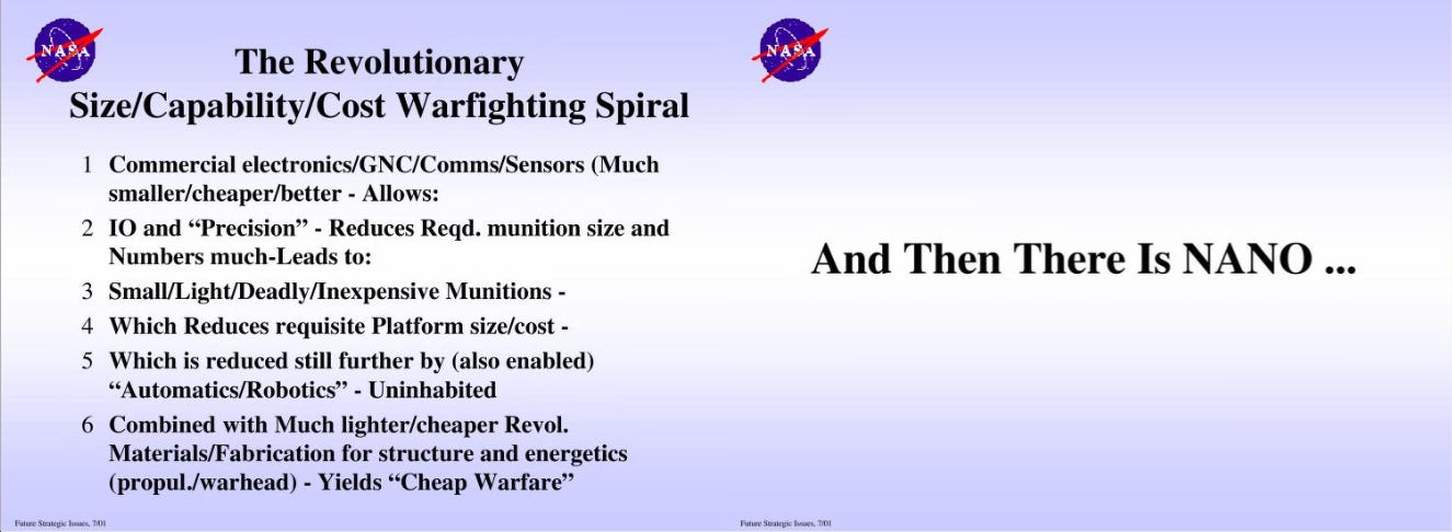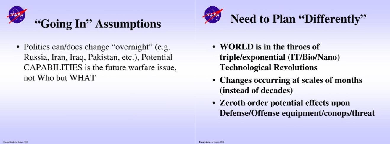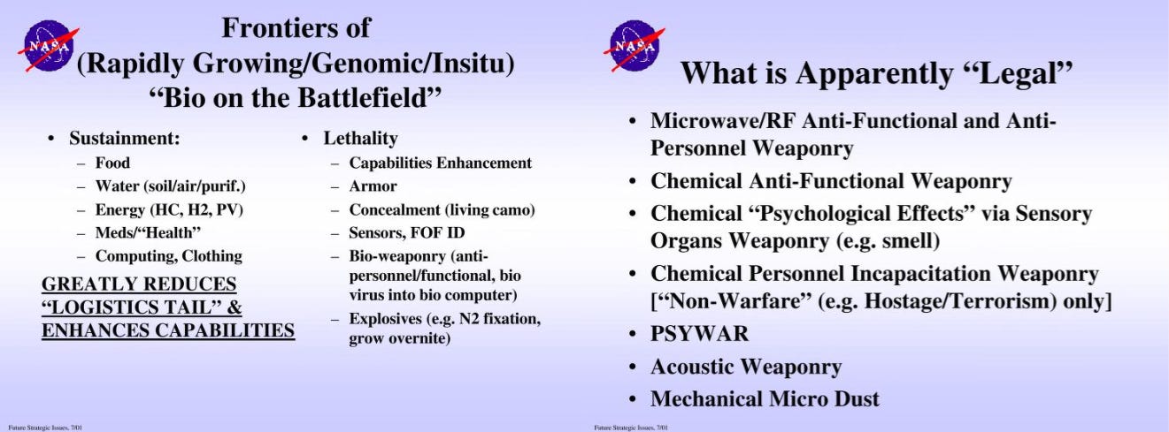 National Aeronautics and Space Administration, NASA, transhumanism, superhumanism, posthumanism, the Singularity, superintelligence, Virtual Reality, virtual worlds, biotechnology, bioengineering, biohacking, genetic engineering, directed evolution, life-extension, nanotechnology, nanoassemblers, living factories, robots, flesh-eating robots, robot swarms, self-replicating robots, replicators, nanobots, cyborgs, cybernetic organisms, artificial life, artificial neural networks, dreaming neural nets, Artificial Intelligence, AI, quantum computers, terraforming, drones, microchip implants, brain chips, Air Force 2025, torture, terrorism, bioterrorism, biowarfare, biowar, CNN Syndrome, Psychological Warfare, Psywar, Information Warfare, IW, Infowar, information dominance, robotic warfare, Robowar, Space Warfare, Spacewar, military superiority