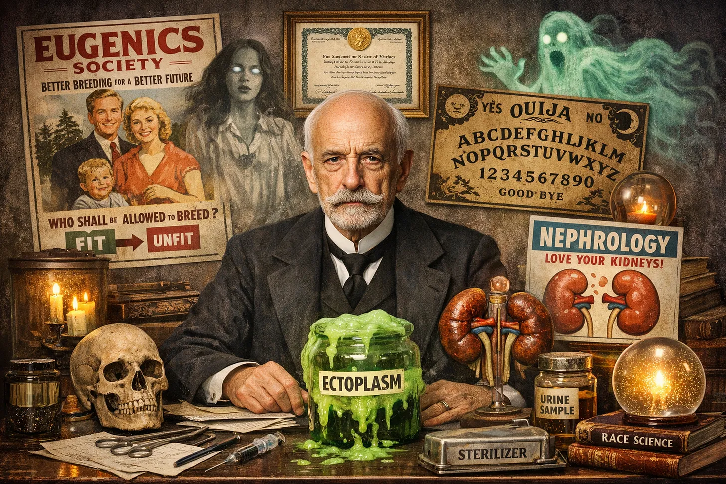 But here’s the twist. While he was busy hunting ghosts and injecting dogs with jellyfish toxins, Richet was also a hardcore eugenicist. He thought sterilization for the mentally disabled was a swell idea, presided over the French Eugenics Society, and genuinely believed black people were intellectually inferior. Yep, the same Nobel-winning scientist whose research saved lives also had the moral compass of a Victorian-era Bond villain.